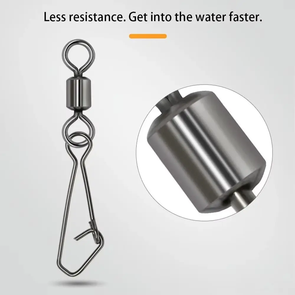 This stainless steel rolling swivel snap features a durable bearing design with an 8-word loop connector, providing smooth rotation and excellent anti-twist performance. It helps reduce line tangling while maintaining strong, secure connections between your line and lure.